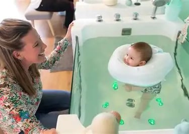 Jullie worden ontvangen met koffie of thee aan een sfeervol gedekte tafel vol lekkernijen. Daarna mogen de baby’s heerlijk floaten in het warme water, terwijl jullie ontspannen toekijken, lachen en delen.
